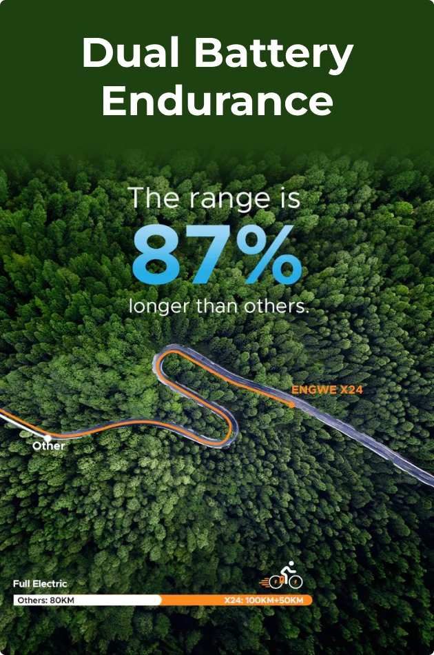 Conquer 30° inclines without breaking a sweat. The X24 climbs mountain trails, forest paths, and steep urban hills that other e-bikes simply can't handle, delivering raw power when you need it most.